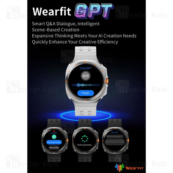 ساعت هوشمند HK28 Ultra امکان استفاده شما از هوش مصنوعی ChatGPT را فراهم میکند. برای استفاده از این هوش مصنوعی کافی است ساعت را به اپلیکیشن متصل کرده و سپس در قسمت مربوطه در ساعت سوالات خود را از این هوش مصنوعی بپرسید. برای اینکار باید یک پیام صوتی در قسمت مربوطه ضبط کرده و منتظر پاسخ بمانید.